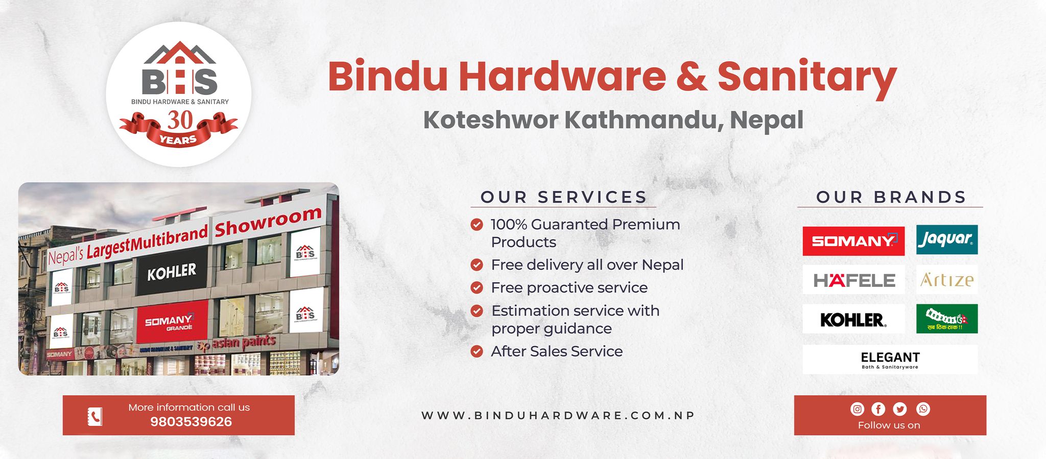 Bindu Hardware & Sanitary (BHS) is one of Kathmandu’s largest multi‑brand hardware, sanitary ware, tiles, and home‑improvement showrooms — a one‑stop destination for construction and renovation needs.