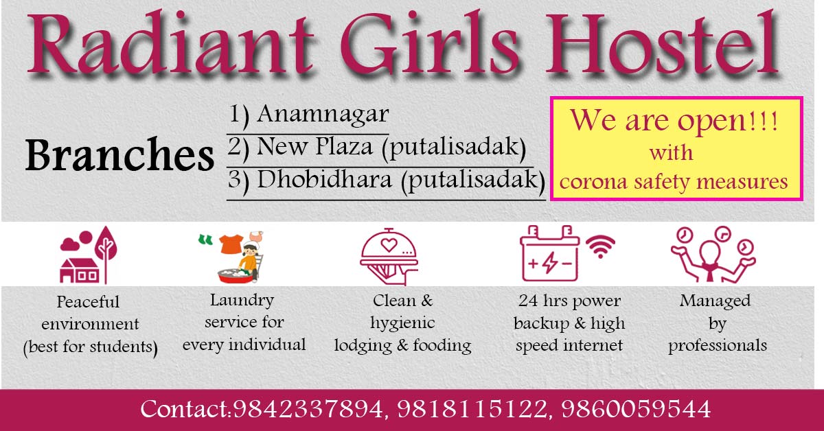 Welcome to Radiant Girls Hostel, a trusted home-away-from-home for female students and working women. We focus on safety, comfort, and cleanliness to provide a worry-free living experience. Our hostel offers spacious rooms, purified drinking water, hygienic kitchen services, laundry facilities, and 24/7 security supervision. The calm and supportive environment helps residents study, relax, and feel at home. With its accessible location and caring management, Radiant Girls Hostel ensures a radiant stay—comfortable, secure, and stress-free.