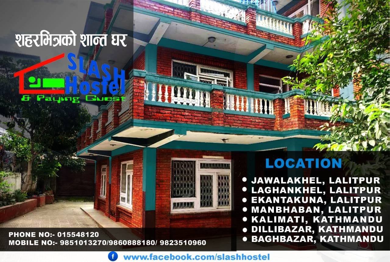 Slash Girls Hostel is listed at Kalimati, Ganeshman Singh Road, Kathmandu.