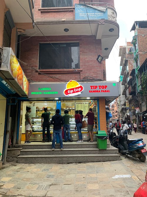 Tip Top Sweets is a well-known vegetarian snack and sweets shop (Indian-style) in Kathmandu, with its New Road outlet located at Sukra Path, Basantapur / New Road, Kathmandu