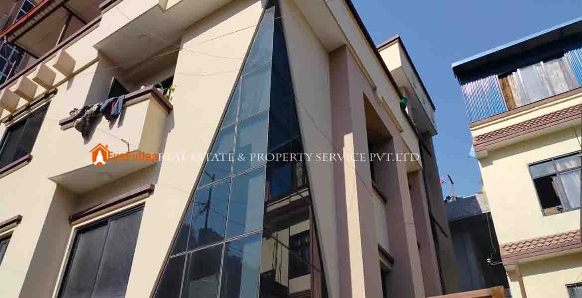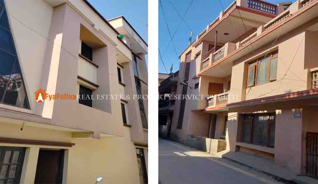 - ठुलाे भर्याङ्गमा १३ फिट बाटोको पहुच र ३ आना ३ पैसा ३ दाम जग्गा भएको साढे दुई तल्ले घर बिक्रीमा !!!!