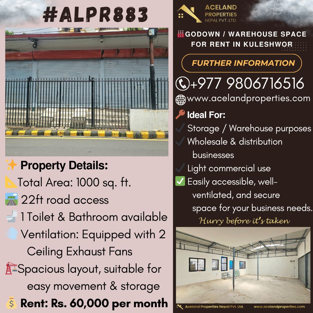 - Office space of 1000 sq ft with a 22 feet road access is available for rent at Kuleshwor